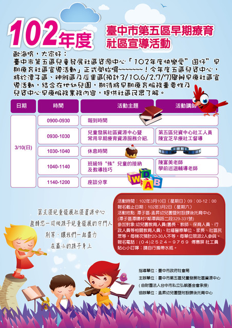 102年臺中市第五區早期療育社區宣導活動開始囉!